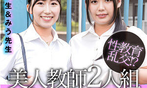 授業が忙しい清楚で綺麗な先生2人組るなさん&みうさんが早漏に悩む童貞君の暴発改善のお手伝いしてもらいました!!情熱手コキが気持ち良すぎて暴発してしまう早漏童貞チ〇ポ!早漏が改善されるようフェザー手コキからフェラチオ式特訓!それでも暴発しちゃう童貞チ○ポに赤裸々発情し、練習素股からそのままヌルっと生挿入!初筆おろし!子宮キュンしちゃった先生は優しくW生中出しさせてくれました!!
